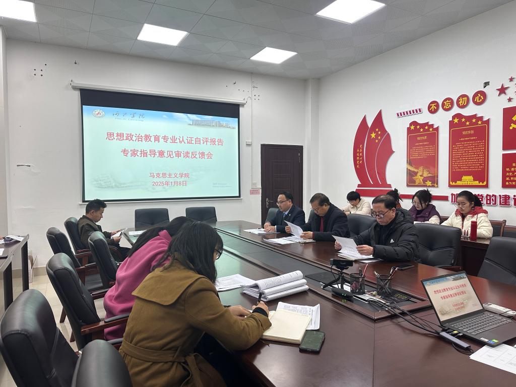 为进一步完善优化思想政治教育专业认证支撑材料,ty8天游登录测速登录1月8日下午在弘毅楼2-208会议室召开思想政治教育专业认证自评报告专家指导意见审读反馈会,学院领导、各教研室主任、办公室老师参加,韦宏思副院长主持。