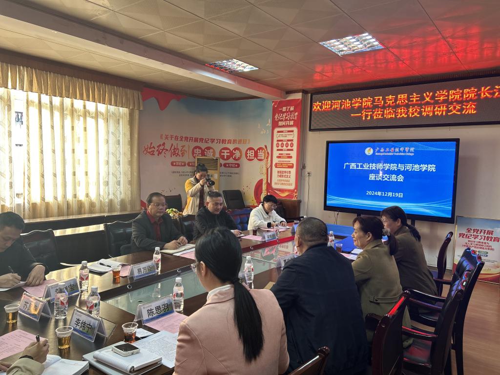 12月19日至21日走访期间,学院一行先后与广西工业技师学院、广西荣峰天下电子科技有限公司、广西理工职业技术学院、南宁市兴宁区兴园路初级中学等多家单位进行深入交流与座谈。主要围绕思政教育在基础教育阶段的重要性及思政专业毕业生的就业适配岗位展开讨论。这些单位详细介绍了各自单位建设发展情况以及对思政毕业生的专业素养和教学能力要求,表达了对具有扎实理论基础和创新教学思维的思政专业毕业生的强烈需求。学院执行院长江洪明则介绍了学院在思政人才培养方面的特色与优势,包括系统的课程设置、丰富的实践教学活动以及学生在各类思政教学竞赛中取得的优异成绩等。各单位和ty8天游登录测速登录就开展教学研讨活动、人才输送等方面达成了初步合作意向,为思政专业学生提供明确的就业方向以及进一步推进学院专业认证工作奠定了良好的基础。