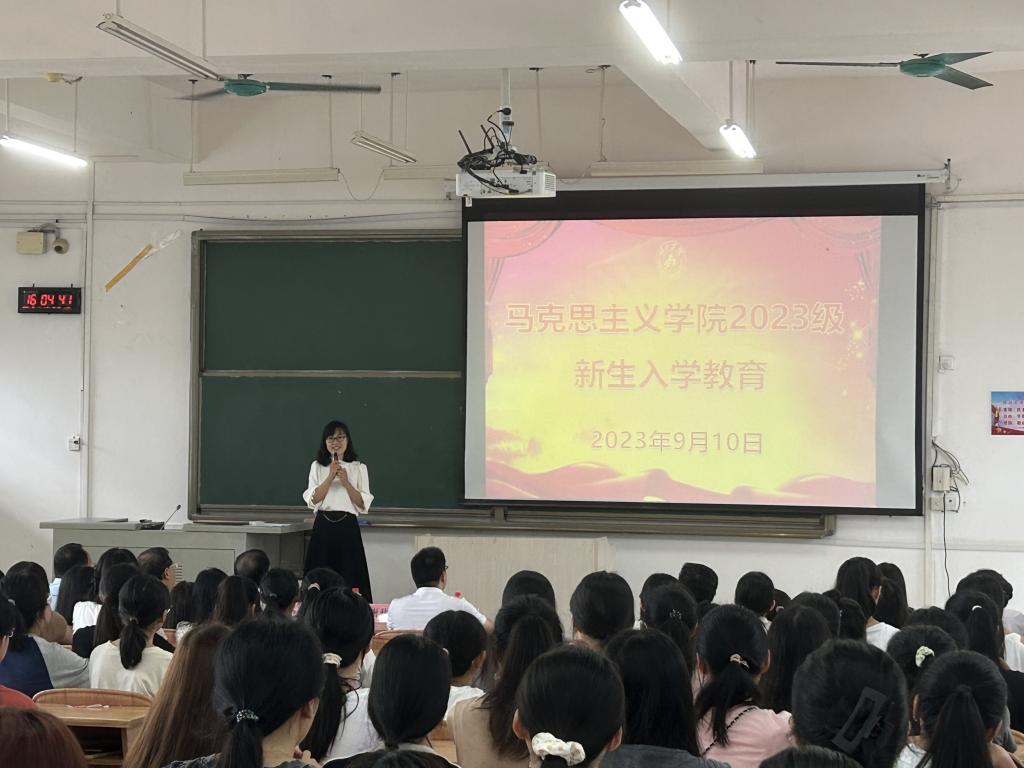 本次活动共有两项议程,一是马院领导班子及办公室相关工作人员与新生见面;二是由执行院长江洪明向新生做新生入学专题教育。江洪明向在座的2023级新生介绍ty8天游官网思想政治教育专业基本概况和专业建设成就,详细地分析思想政治教育专业就业前景和发展方向,就如何适应大学生活给出意见和建议,并引导新生做好长期和短期的学习、生活、自我发展规划,合理协调好学习和生活,努力做到知行合一。