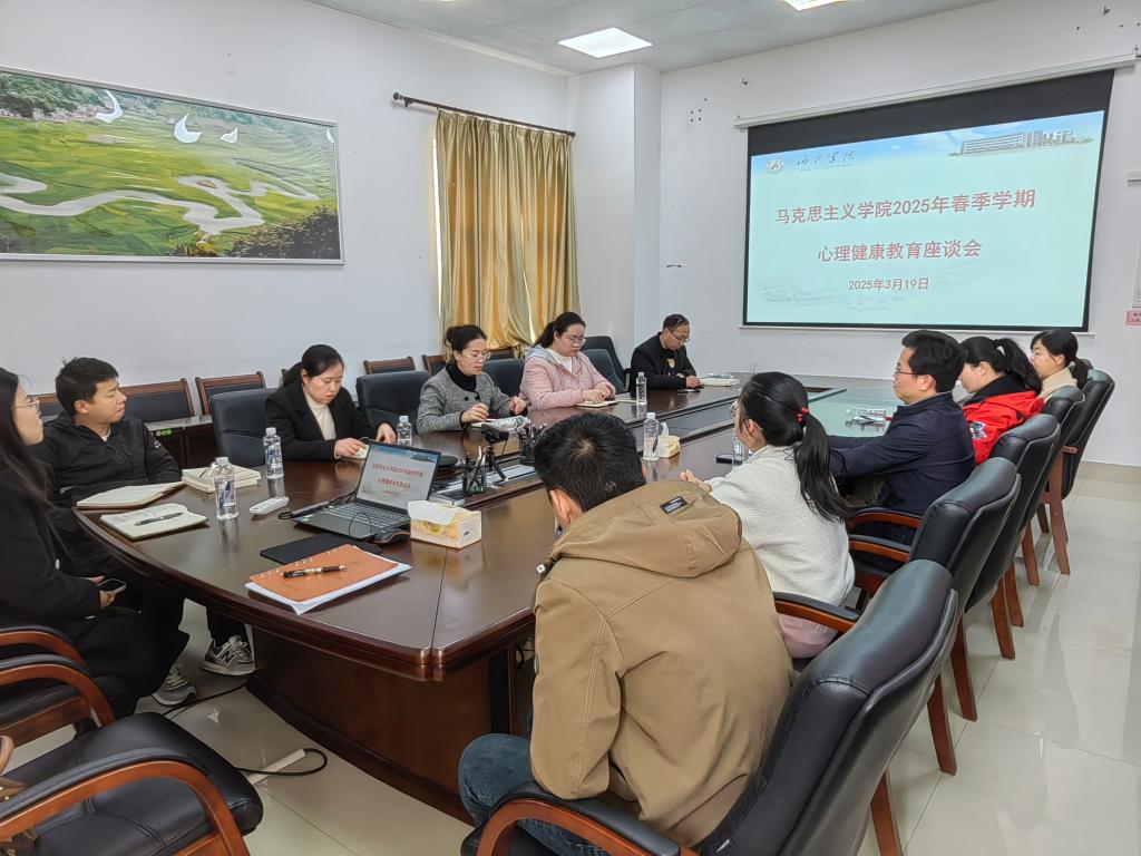 3月19日下午,ty8天游登录测速登录在弘毅楼2-208室召开心理健康教育工作座谈会。学校心理中心负责人张凤仙、专业心理教师莫伟,学院党委副书记陆俊先,辅导员卢巍丹及全体班主任参加会议,共商学生心理健康教育工作新举措,为学生健康成长保驾护航。