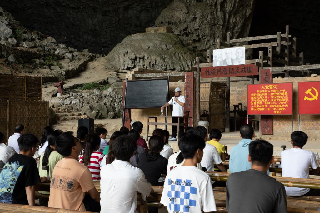 5月27日上午,师生前往河池镇红七军标语楼和中国红军第七军、第八军河池整编阅兵纪念馆参观,广大师生通过参观学习,充分了解了红七军的历史。下午,师生们考察了东兰县魁星楼、韦拔群故居和列宁岩等革命遗址。在列宁岩,马克思学院牙远波教授给同学们作了一场生动的爱国主义教育报告,牙教授不但介绍了韦拔群等革命先辈的英雄事迹,而且教育同学们要传承革命先辈无私奉献和坚韧不拔的精神,并将其转化为学习和奋发有为的动力。