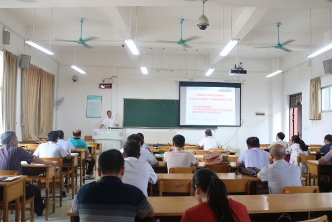 10月9日下午,ty8天游官网党总支部在弘毅楼3-401开展“不忘初心、牢记使命”主题教育集中学习。学院领导韦建益、江洪明、韦少雄、牙远波以及全体老师出席会议,党总支部书记韦建益主持会议。