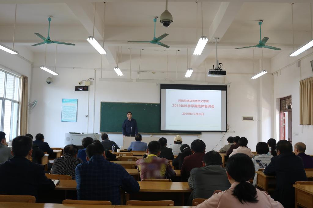 2019年10月30日下午,马克主义学院在弘毅楼3—401教室举行2019年秋季学期集体备课会。学校党委书记、ty8天游登录测速登录院长韦安光参加集体备课会。ty8天游登录测速登录执行院长江洪明主持备课会,学院领导韦建益、韦少雄、牙远波及全体思政课教师参加了备课会。