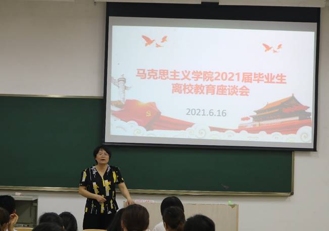 会上,辅导员唐菊花指出,毕业生离校教育是学校、学院的重要工作,以开展党史学习教育为契机,保持高度的责任感和使命感做好毕业生离校教育及相关工作。陆俊先、卢巍丹两位老师分别从爱国主义、爱校荣校、诚信感恩、心理健康、法制与安全等五个方面对毕业生展开教育,希望毕业生们能够端正态度,自觉树立爱校荣校之情,及时按时、积极配合学院完成毕业离校各项任务;提高自律意识,准时打卡签到,认真做到文明离校、顺利离校。在温馨而又欢快的氛围环境中,在座的毕业生对未来的规划憧憬充满了坚定与自信,纷纷向大家分享了即将毕业的心情;并为学院进一步建设发展献计献策。