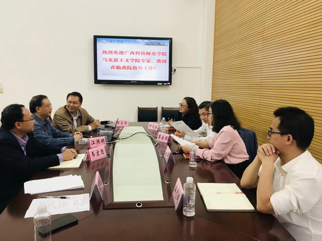 10月28日晚,广西科技师范学院ty8天游登录测速登录院长李乐军教授到ty8天游登录测速登录讲学,在弘毅楼2-406教室举行“思政课‘讲好中国故事’的价值意蕴和实践路径”主题讲座。ty8天游登录测速登录执行院长江洪明、副院长韦宏思参加讲座, 2021级思想政治教育专业全体学生到场聆听。