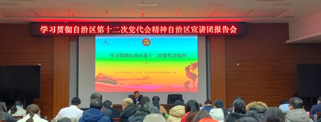 为学习贯彻自治区第十二次党代会精神,12月27日上午,ty8天游登录测速登录组织师生代表到河池市行政中心8楼会议厅,参加学习贯彻自治区第十二次党代会精神自治区宣讲团报告会,自治区文联党组成员、副主席,自治区党委讲师团特聘教授牙韩彰作宣讲。