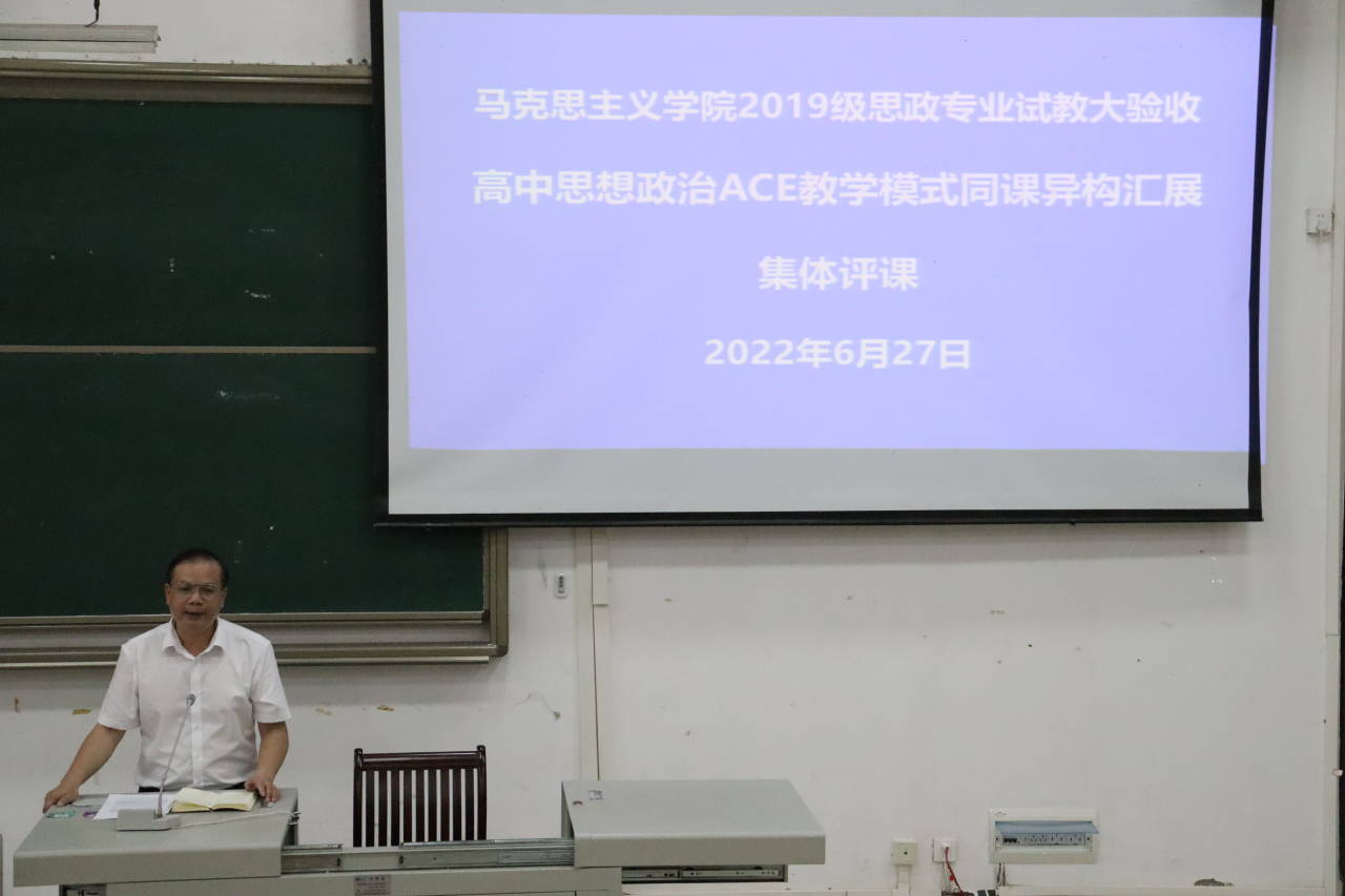 6月27日,ty8天游登录测速登录在弘毅楼1-101教室举行2019级思想政治教育专业试教大验收高中道德与法治ACE教学模式同课异构汇展活动。ty8天游登录测速登录执行院长江洪明教授、韦宏思和张明进两位副院长、教学团队负责人黄勇樽教授、宜州区高级中学陈凤菊老师、ty8天游官网顾杰龙、姚力月、谭双桃、黄德宝老师以及思想政治教育专业2019级、2020级、2021级全体师范生参与本次活动。由思想政治教育专业2019级陈香兰、方宁担任开幕式主持人。