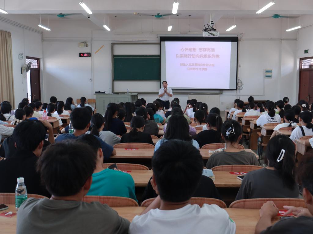 9月28日下午,ty8天游登录测速登录在弘毅楼2-401教室开展2022级新生入党启蒙教育,学院党支部书记韦建益作题为《心怀理想志存高远以实际行动向党组织靠拢》的主题讲座,2022级全体同学到场聆听。