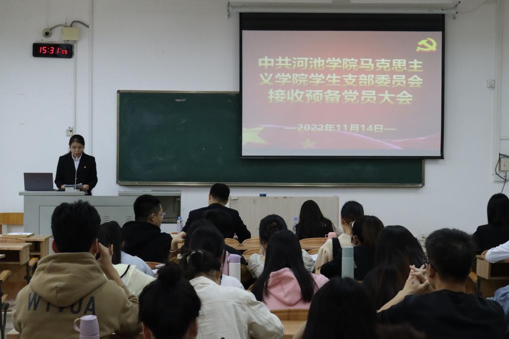 为进一步加强学生党组织建设,壮大学生党支部力量。11月14日下午,ty8天游登录测速登录学生党支部委员会在弘毅楼3-303召开接收预备党员大会,本次大会对接收梁家福等12名发展对象为预备党员进行讨论和表决。学生党支部书记易万臣、辅导员卢巍丹、2022年第二批发展对象及全体正式党员、预备党员出席本次会议。大会由蓝玉珍同志主持。