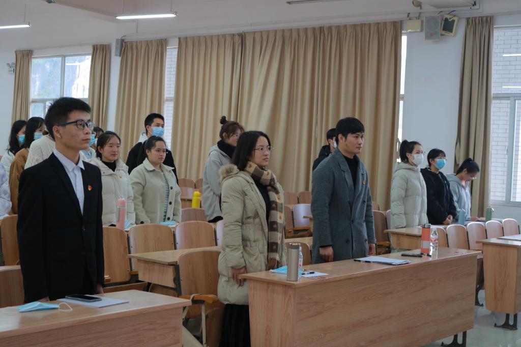 12月8日,ty8天游官网学生第一支部委员会召开预备党员转正大会,重点审议祝少杰等7名预备党员转正事宜。会议采用线上线下相结合的方式进行,支部书记易万臣、组织委员卢巍丹、第一支部正式党员、预备党员出席本次会议。会议由蓝玉珍同志主持。