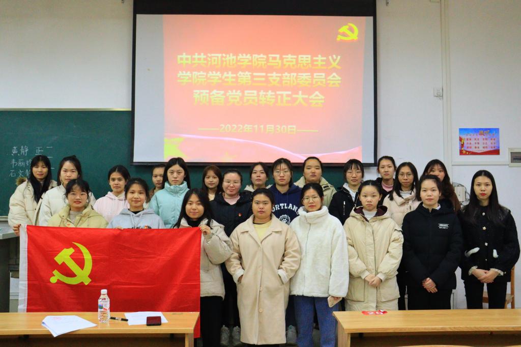 会议严格按照预备党员转正程序逐项进行。全体人员共唱国歌后,欧秀明等13名预备党员依次汇报了在预备期间思想、学习、工作和生活等各方面的情况,并接受答辩小组成员的提问。随后,由入党介绍人分别介绍欧秀明等13名预备党员在预备期间有关情况和教育考察情况,对13名即将转正的预备党员预备期间的表现给予了肯定,对其存在的不足提出了建议。与会正式党员就欧秀明等13名同志能否按期转正的问题充分讨论并发表意见。经过民主投票,大会一致认为欧秀明等13名同志具备了转正条件,同意按期转正。