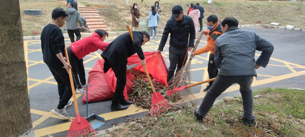 在马院领导班子的带领下,全体工会成员干劲十足,全面打扫马院责任卫生区各个角落卫生死角,清理地面上的小纸片和杂物,扫除数目下的枯枝落叶。