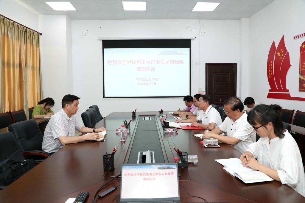 6月7日,学校党委书记、ty8天游登录测速登录院长韦安光到ty8天游登录测速登录调研指导工作。ty8天游登录测速登录党委班子成员参加座谈会。