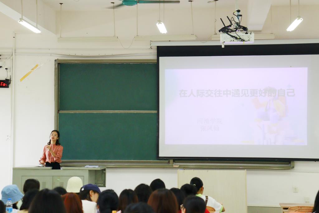 讲座伊始,张凤仙通过邀请在场的同学进行自我介绍的方式,调动了同学们的积极性与参与感,同学们在轻松的氛围下完成自我介绍,营造了良好的现场氛围。张凤仙从人际关系和人际交往、人际交往的需求、大学生常见的人际问题和恋爱中的人际关系四个方面展开讲述,通过生动的语言、鲜活的案例、思辨的视角为同学们深入浅出的讲述了人际关系的重要性、常见的人际关系问题以及如何应对生活中的矛盾冲突。同时强调学生要学会正确认识人际关系的矛盾冲突,才能更好地应对人际关系的矛盾冲突,发挥人际冲突的建设性作用。