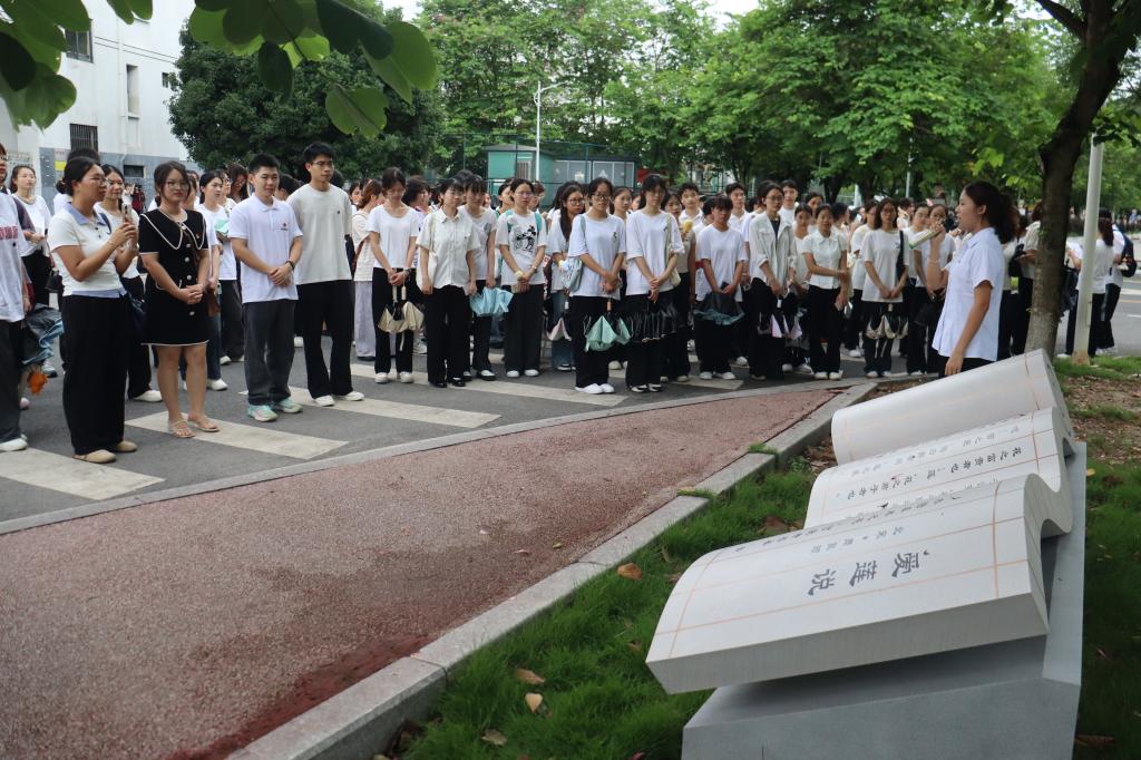 活动现场,主讲人分别对廉洁文化广场的三大核心板块展开深度解读:在主题区,溯源古代廉吏典故,阐释廉洁文化的历史传承;于廉心亭文化区,剖析传统建筑与廉政思想的交融之美;并沿着50米步道文化区,解读文化长廊的时代意义。主讲人讲述设计理念与文化渊源,使同学们对广场蕴含的清廉智慧有了更为立体的认知。
